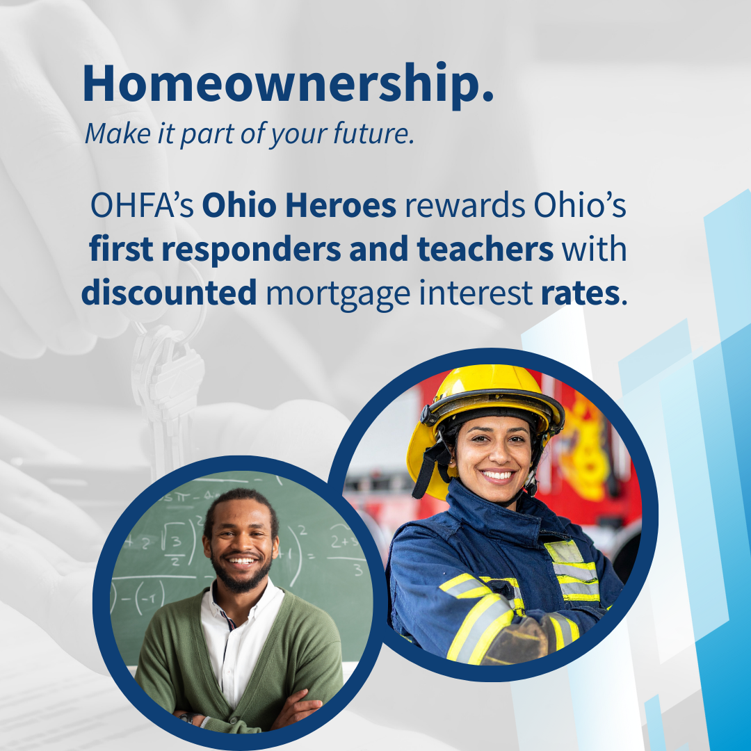 Suggested Text for Real Estate Agents: DYK? Those who work in public service careers may be eligible for a discounted mortgage interest rate through the Ohio Heroes program.
